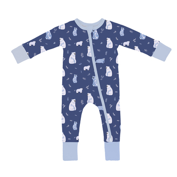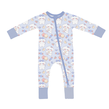 ملابس نوم مخصصة للأطفال والرضع مطبوعة بتقنية التفاعل من البامبو والسباندكس بسحاب مزدوج