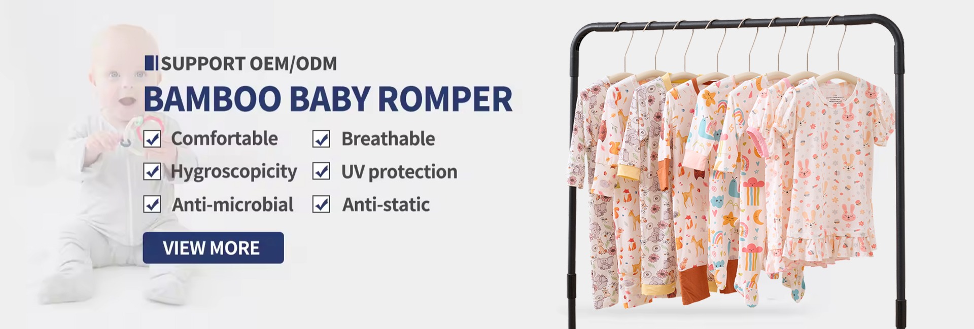Wholesale Custom Print Bamboo Spandex Cute Newborn Baby Kids Long Sleeve Girls Boy Pajamas Romper Zipper Clothes Set